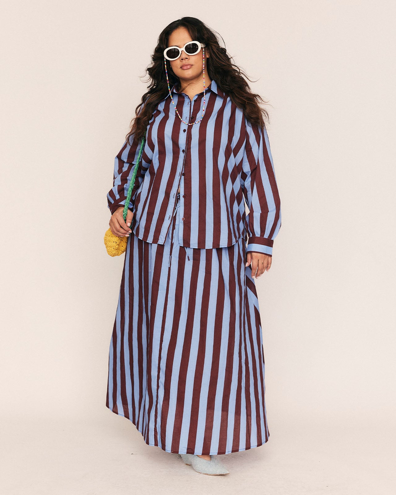 Spinning out from a gathered elastic waistband, the Hannah circle skirt moves with you. In soft striped cotton with side pockets and a midi length, it’s easy to throw on and always looks put-together.