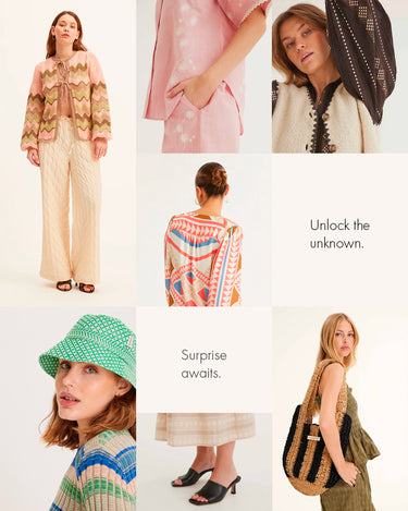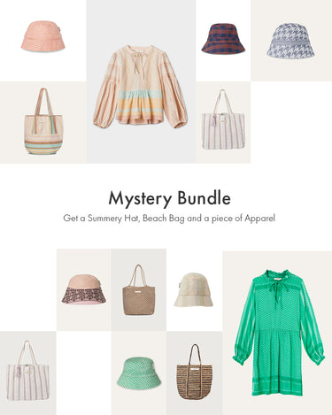 Introducing our Summer Starter Pack. A curated trio designed to bring a little sunshine to every wardrobe. Inside, you’ll uncover three hand-picked essentials: a stylish SUMMERY hat, a chic beach bag, and a beautiful piece of apparel (either a dress, blouse or set.